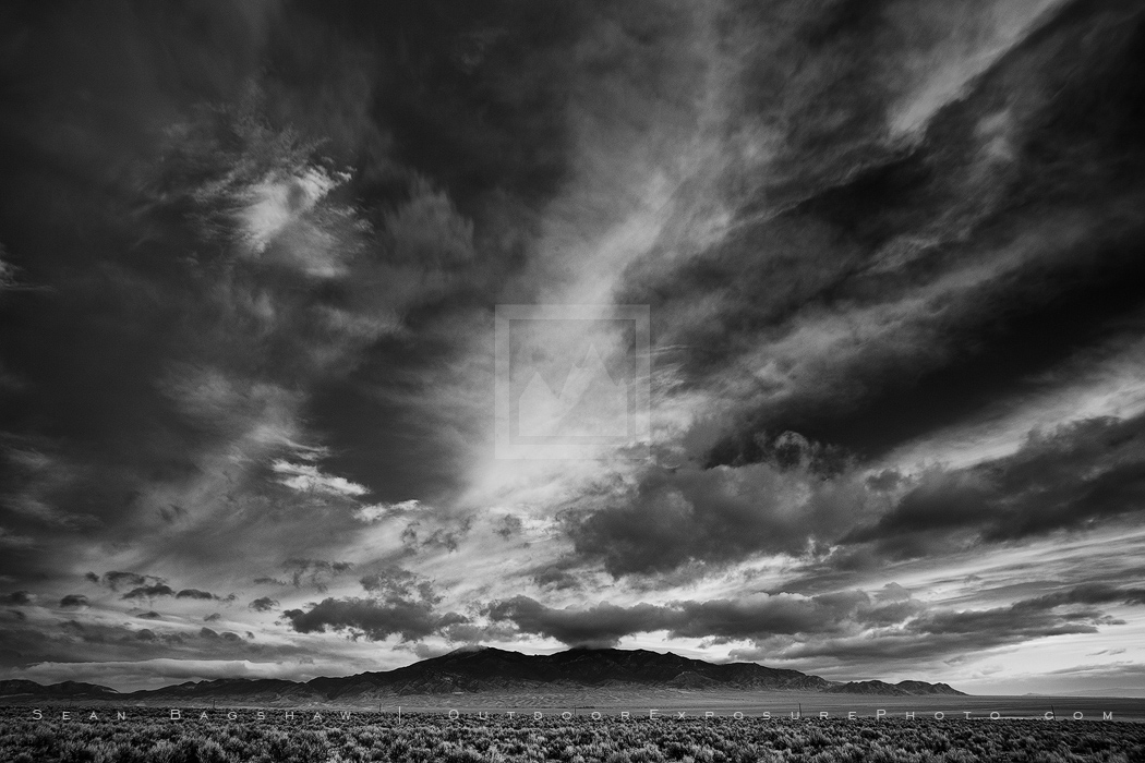 Great Basin, National Park, Nevada, desert, basin, range, sage, sky, clouds, black and white, sunrise, 2009, horizontal