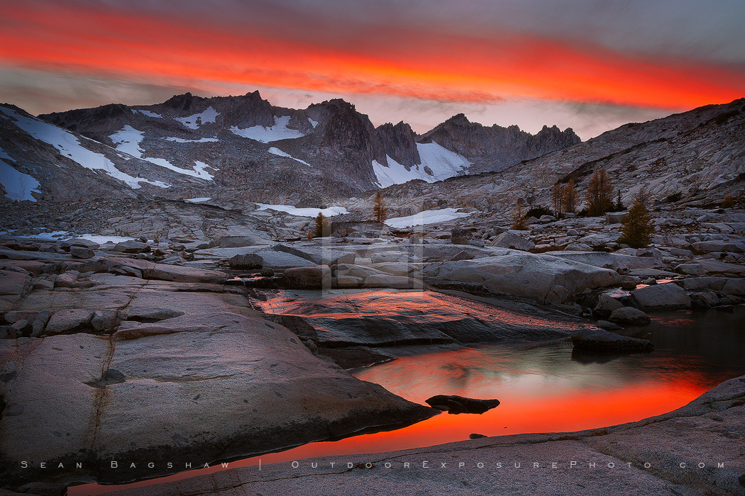 Sunset over Asgard Pass and the Dragon Tail Ridge, Enchantments, Washington.