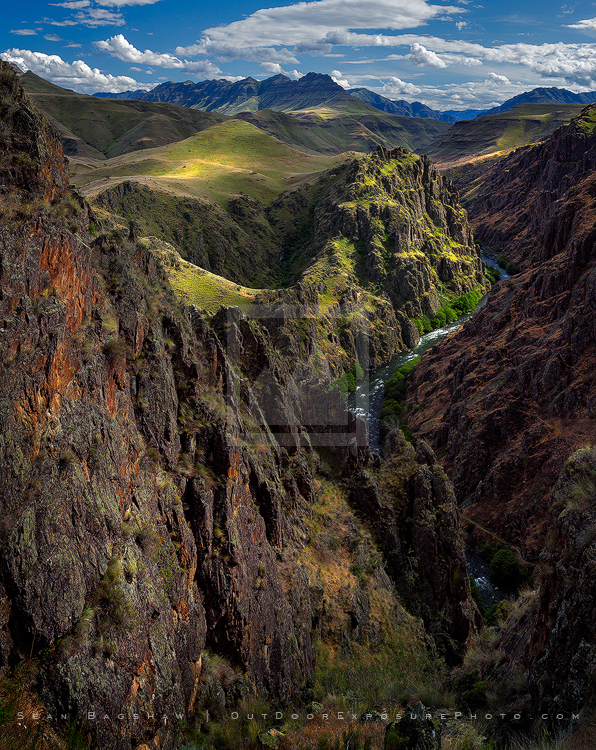 Islands of light drift accross the rugged and remote landscape of the Imnaha River Canyon, Oregon.