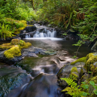 Shape, color and shadow define this abstract impression of the redwood forest in Stout Grove, part of the Redwood State Forest in northern California.